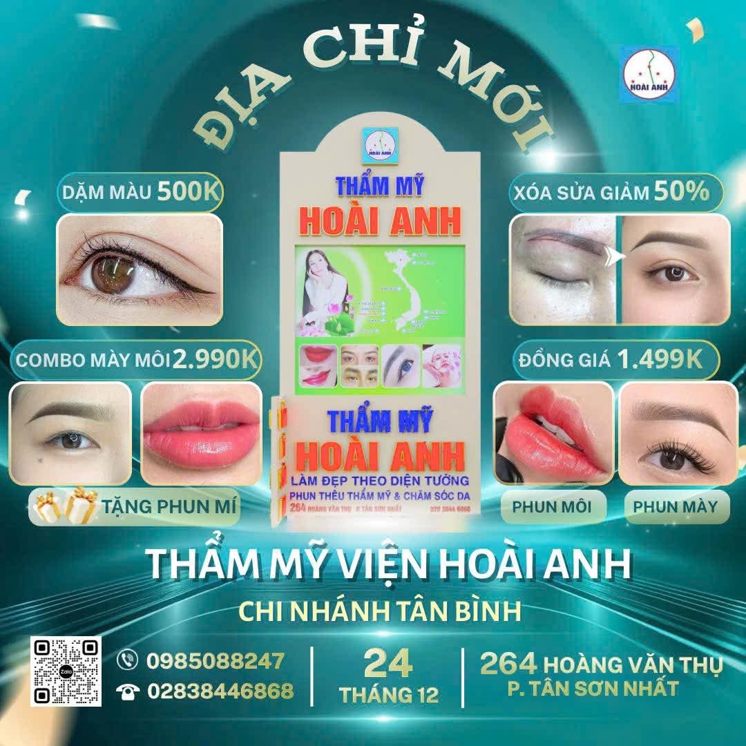 🎉 [ƯU ĐÃI ĐẶC BIỆT – 2 TUẦN ĐẦU HOẠT ĐỘNG] THẨM MỸ HOÀI ANH – CƠ SỞ TÂN BÌNH (ĐỊA ĐIỂM MỚI)